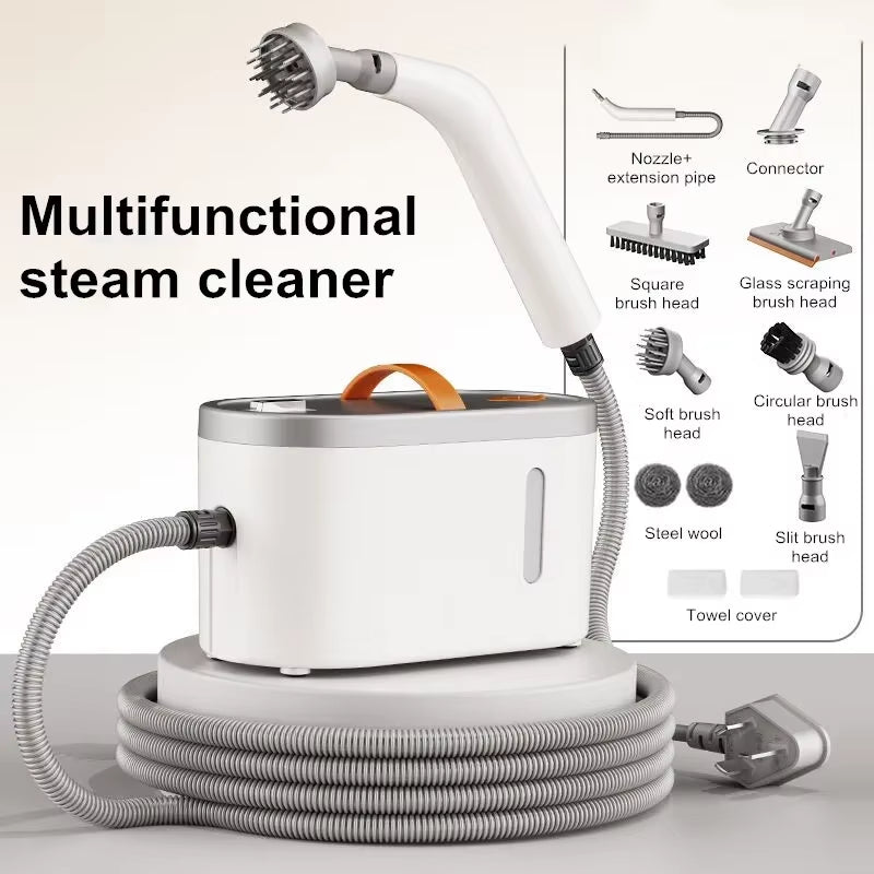 1.Deep Cleaning Power: The steam cleaner penetrates deep into surfaces to remove dirt, dust and stains without the use of harsh chemicals. Versatile: Suitable for cleaning a variety of surfaces such as floors, tiles, carpets, upholstery and even windows. 2.Environmentally Friendly: Uses only water to generate steam, making it an environmentally friendly and safe option for home cleaning. 3.. Kills germs and bacteria: High temperature steam can effectively kill 99.9% of germs and bacteria, ensuring a hygienic living environment. Quick heating time: It can be used within minutes, saving you cleaning time. 4. Lightweight and portable: easy to move around the house, so cleaning is no longer a chore. 5. Various attachments: Comes with a variety of attachments to meet different cleaning needs, from scrubbing brushes to squeegees. Chemical-Free Cleaning: Ideal for homes with children and pets as it eliminates the need for chemical cleaners. 6. Energy efficient: Uses less energy than traditional cleaning methods, thus reducing overall energy consumption. 7. Quiet operation: Designed to run quietly so you don't disturb others in the home while cleaning.