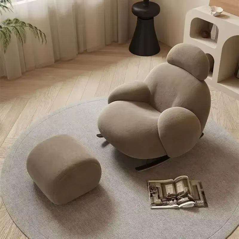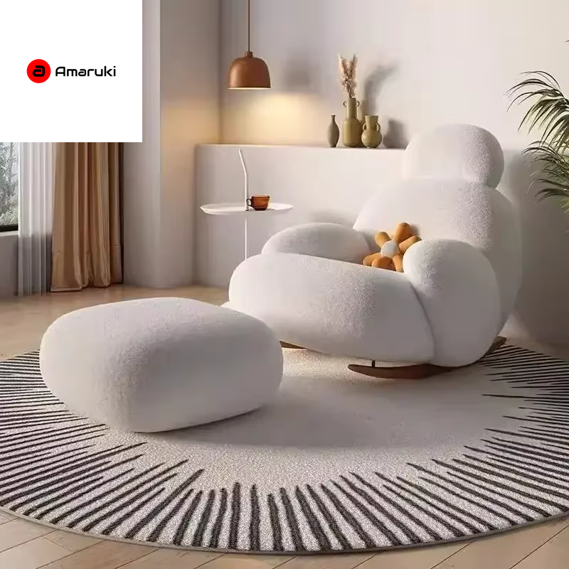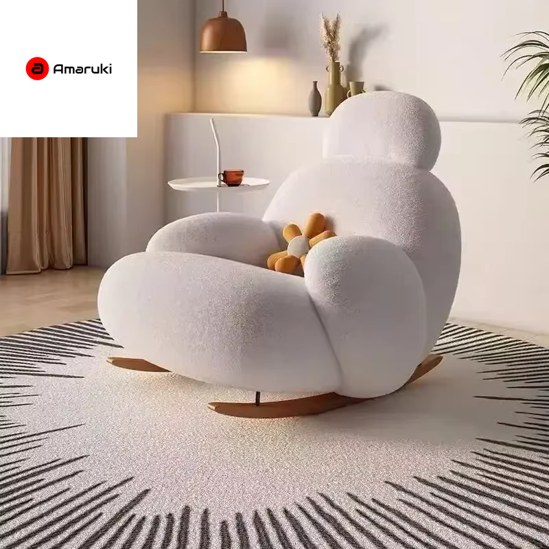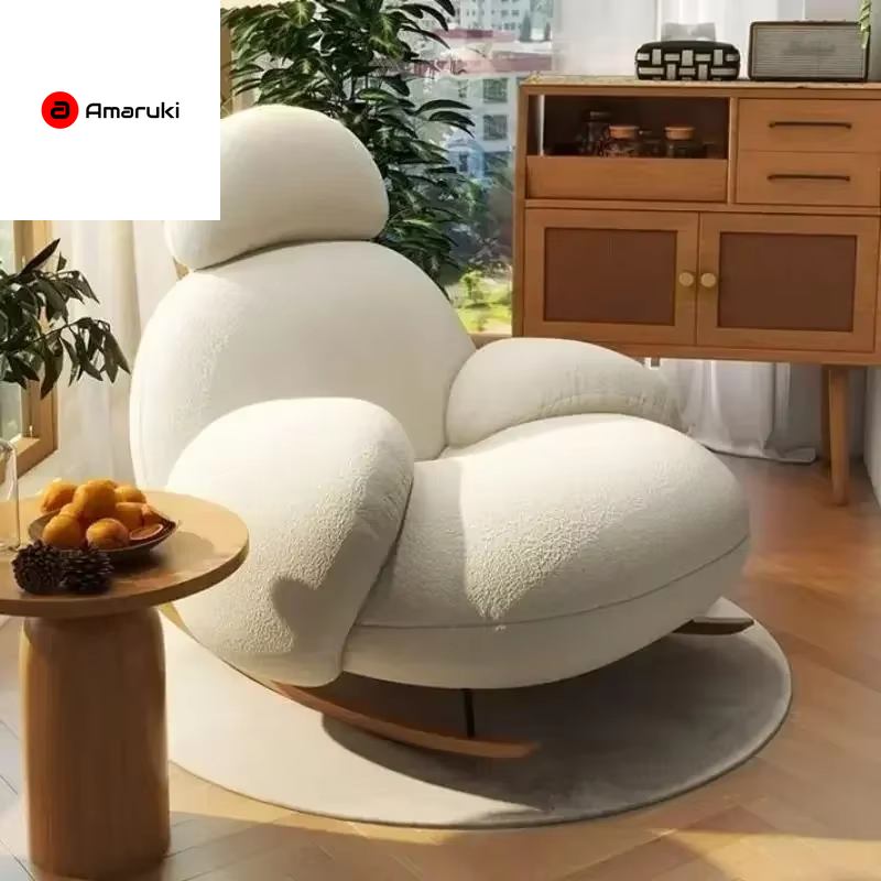 Big White Internet Celebrity Rocking Chair Lazy Sofa Single Rocking Chair Cream Living Room Lazy Chair Simple Balcony Bedroom