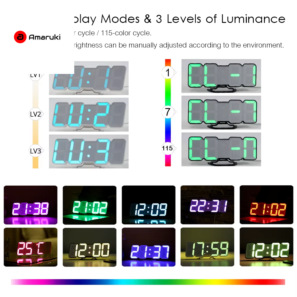 ■This product includes a variety of functions, such as clock, date, alarm, weekend alarm, snooze, voice control, temperature, humidity and countdown.