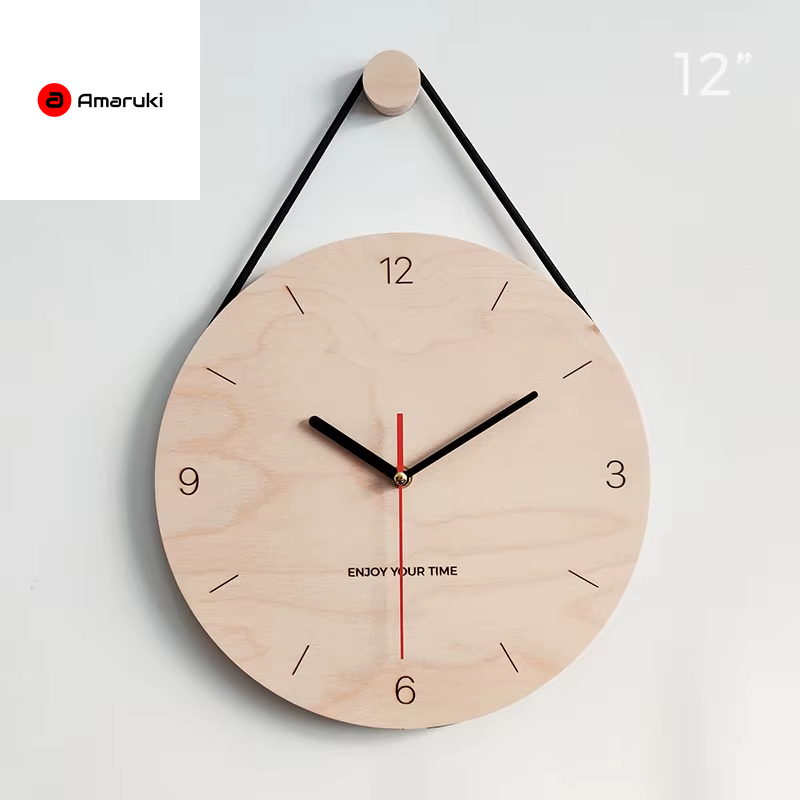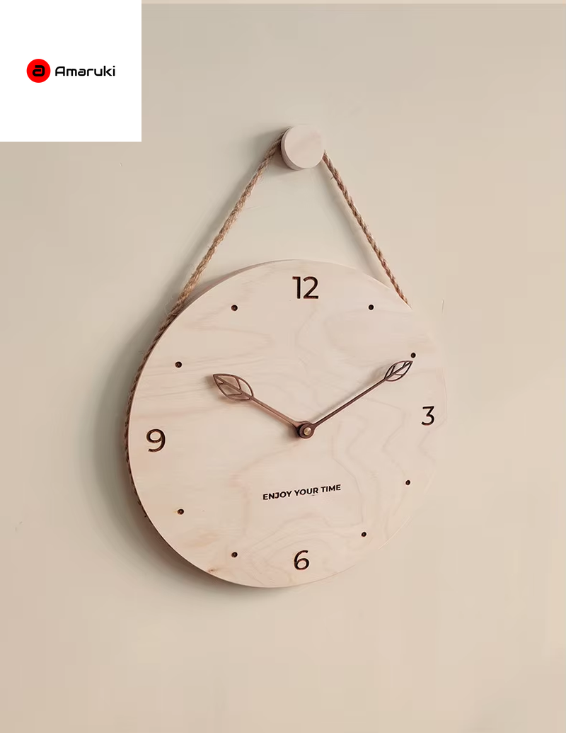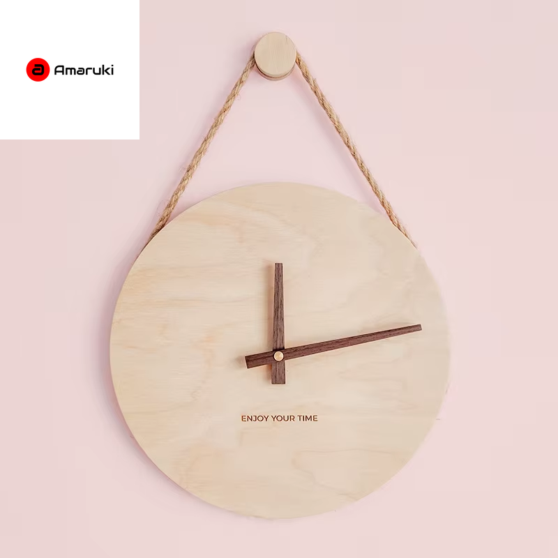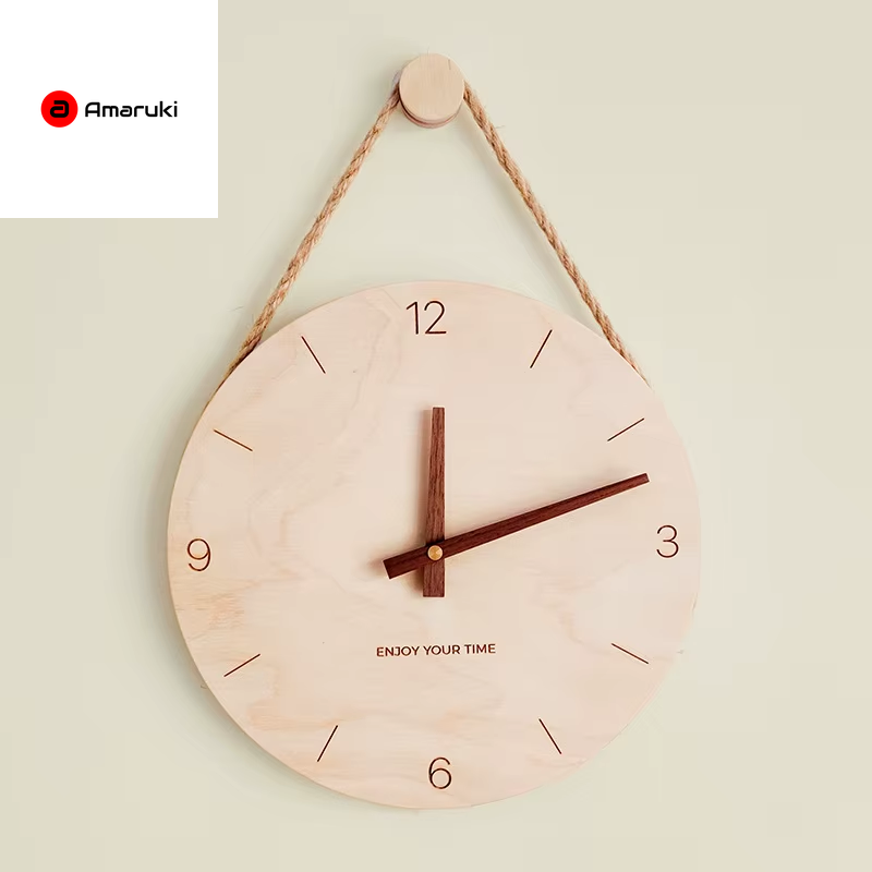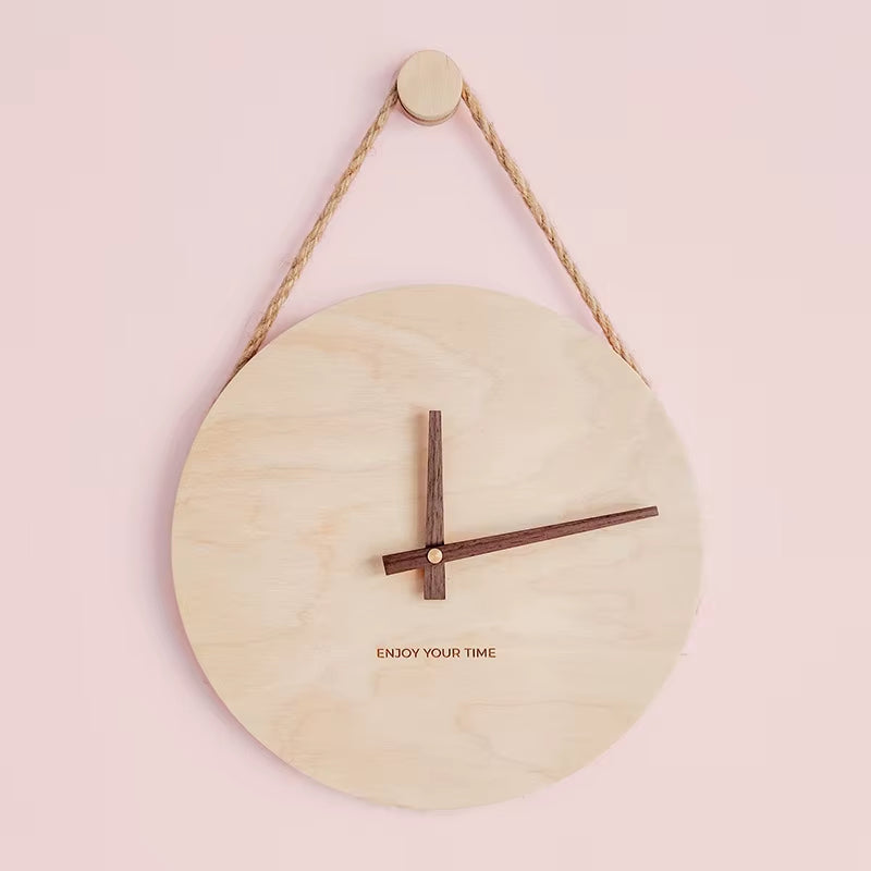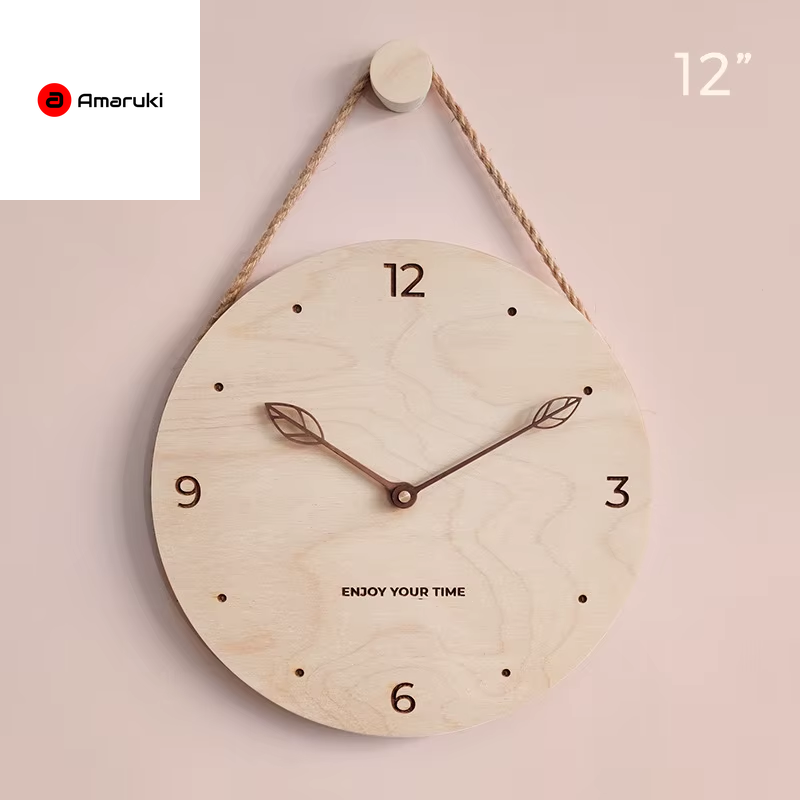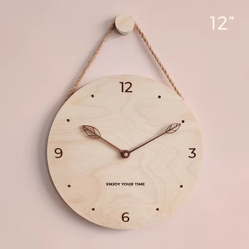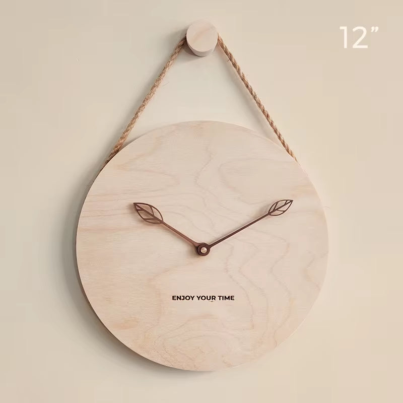 Simple Style 12 Inches wooden wall clock  Wooden Hanging Rope Wall Clock Watch Living Room Office Cafe Home Decoration Art Large Wall Clock