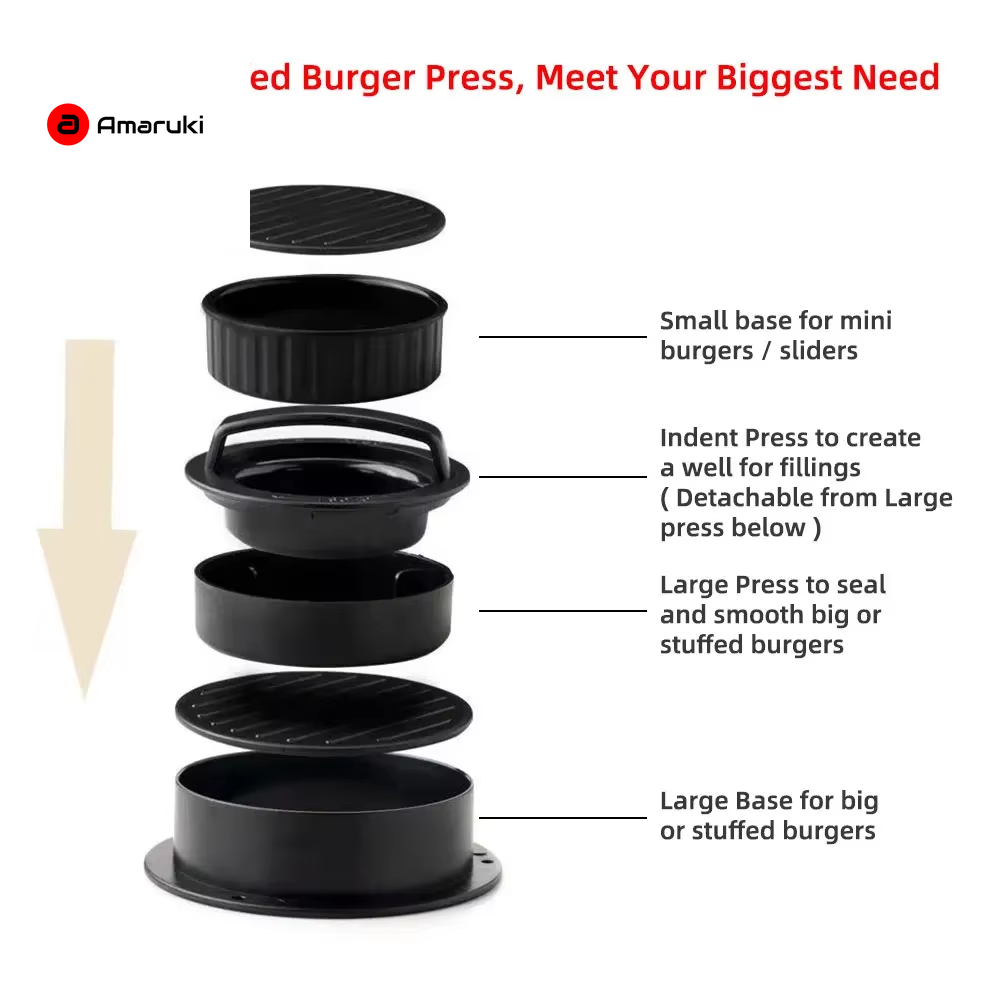 Create perfectly shaped burgers in seconds with our Hamburger Press, the ultimate tool for every grill master and home cook. Made from high-quality, non-stick materials, it forms uniform patties quickly and effortlessly—no mess, no sticking. The sturdy handle provides a comfortable grip, ensuring consistent thickness for even cooking on the grill or pan. Ideal for beef, chicken, veggie, or fish burgers, this press helps you make restaurant-quality patties right at home. Easy to clean and dishwasher safe, it’s a must-have for barbecues, meal prep, and family dinners. Durable, compact, and efficient—our hamburger press makes homemade burgers easier, faster, and tastier than ever.