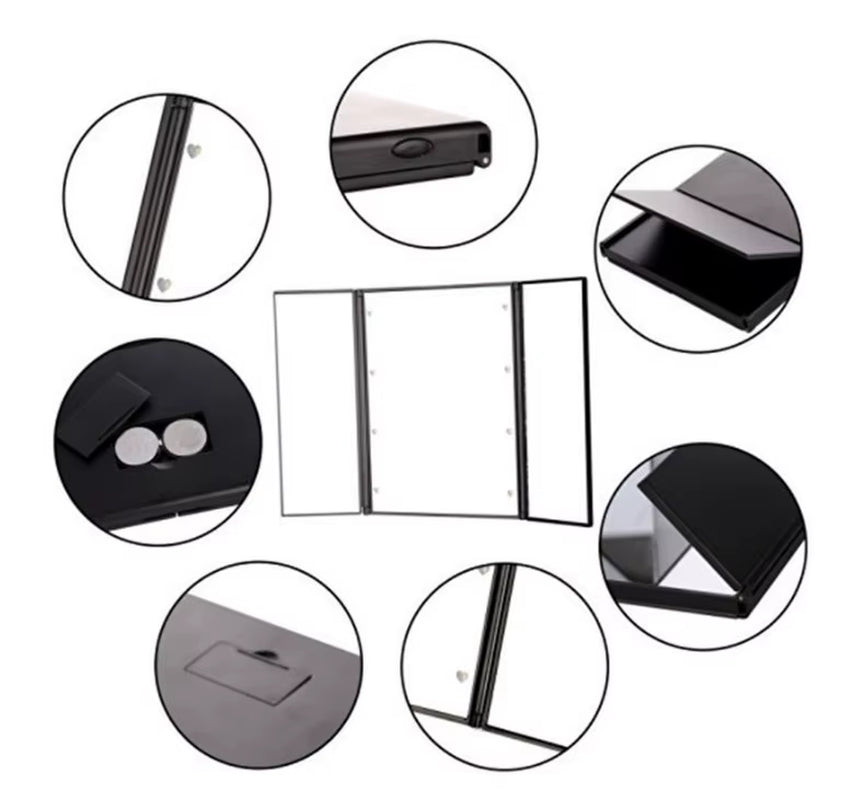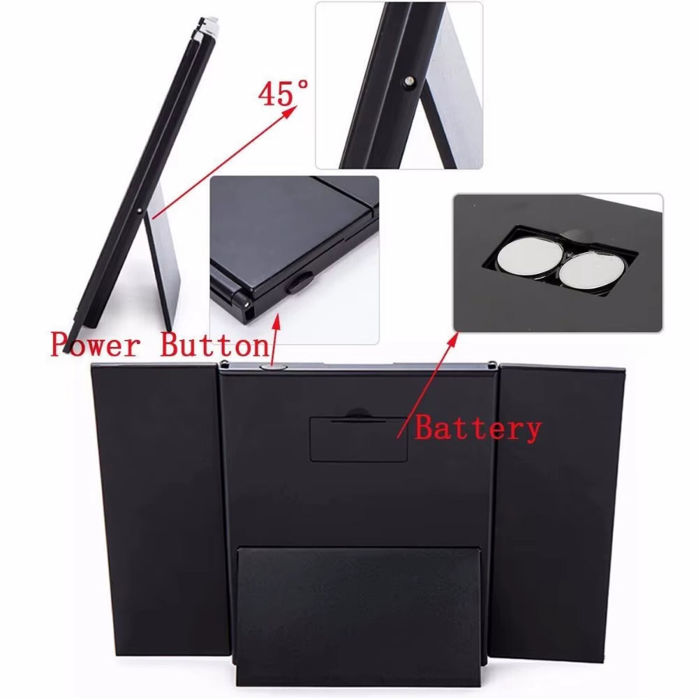 1*Desktop Three-sided Folding LED Light Makeup Mirror