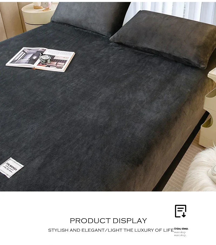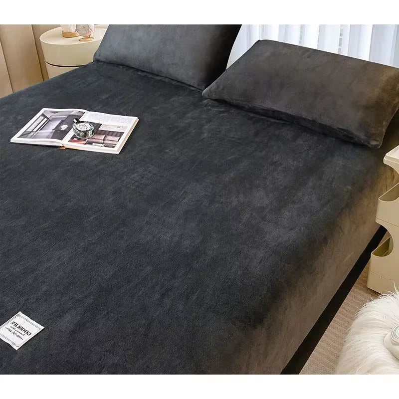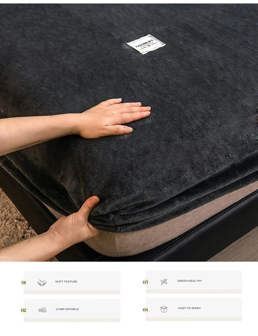 Soft Warm Plush Fitted Sheet Elastic Mattress Cover Fluffy Coral Fleece Bed Linen Winter Couple Luxury Double Bed Bedding