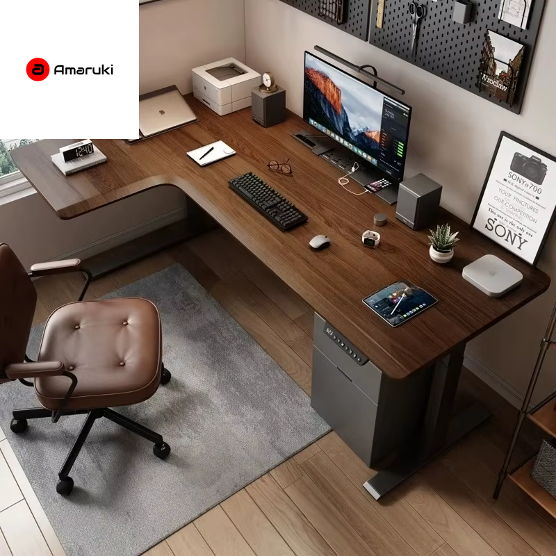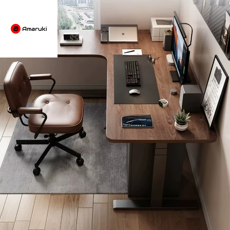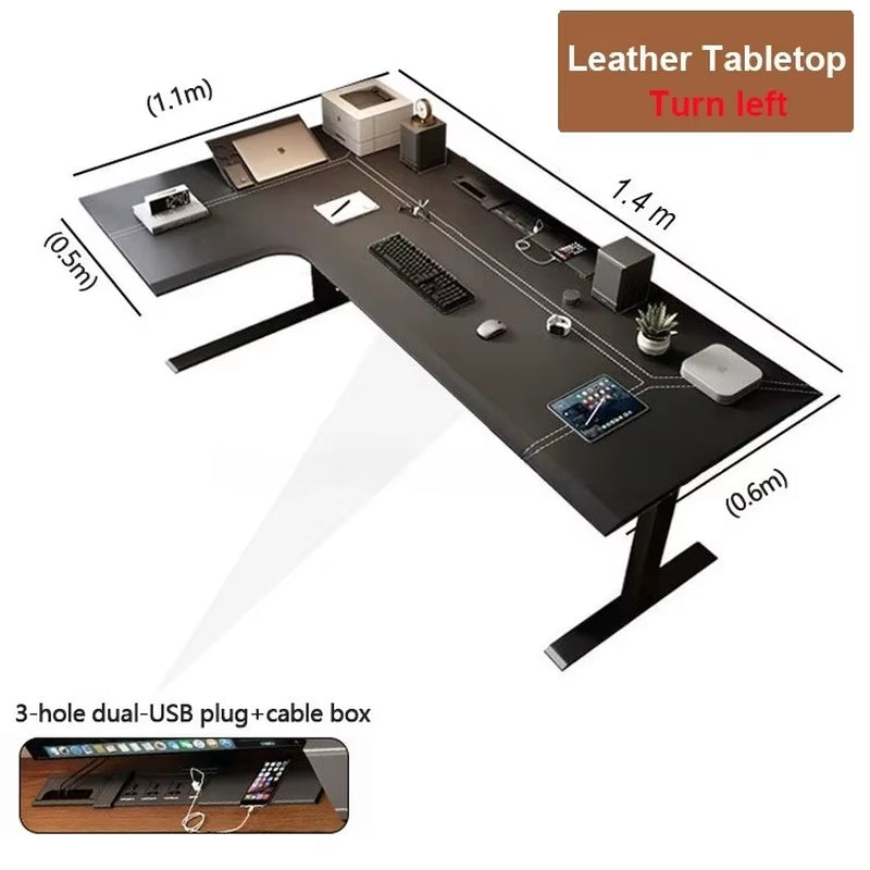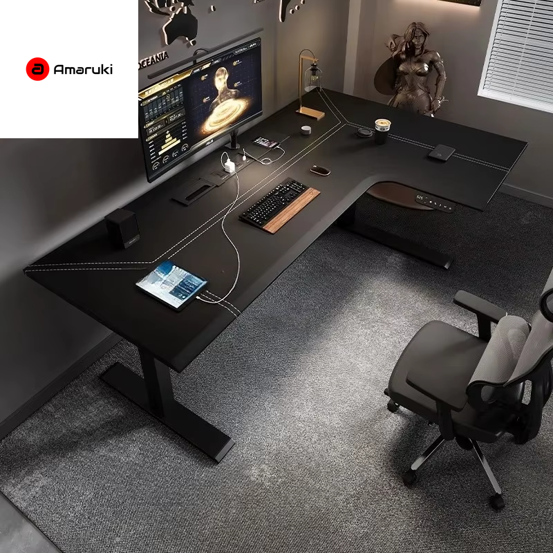 Seven-Shaped Large Boss Office Desk Electric Adjustable Height Computer Desk Table with LED Display Motion Gaming Desk for Home