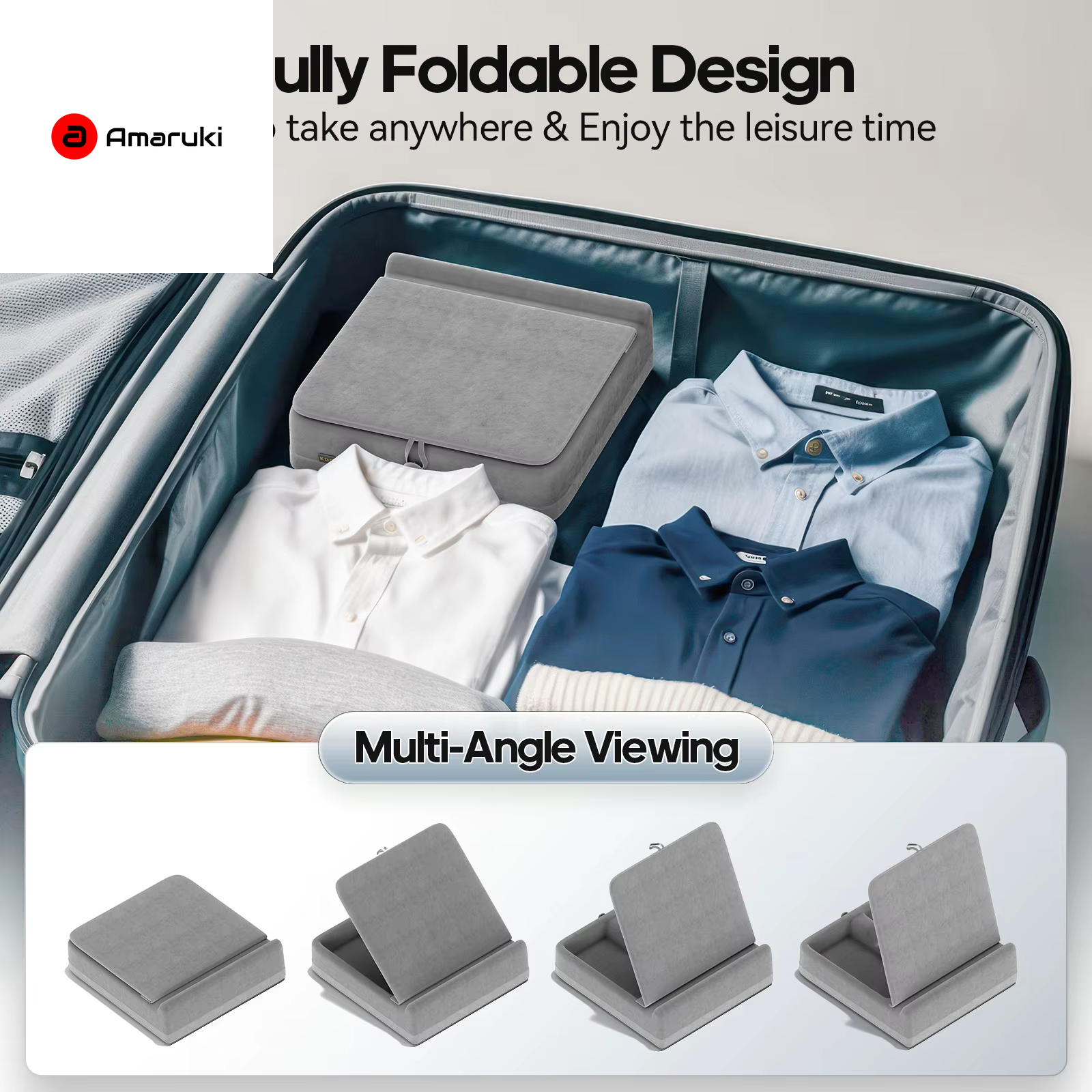 The tablet stand for lap is lighter and more portable, fully foldable design, easy to carry, can be easily put into luggage without taking up space, perfect for traveling.