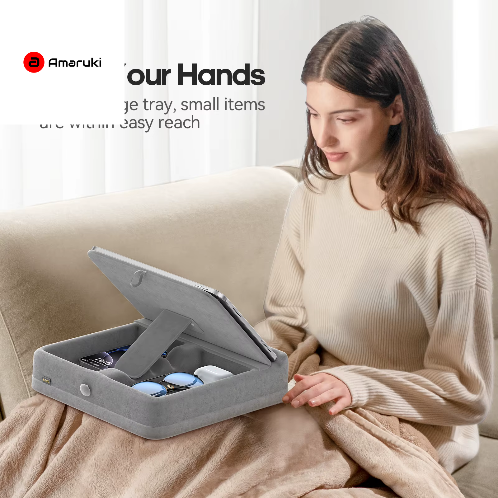 Storage Function with Pen Holder- This cell phone tablet pillow holder has two trays and 2 pen holders storage function.