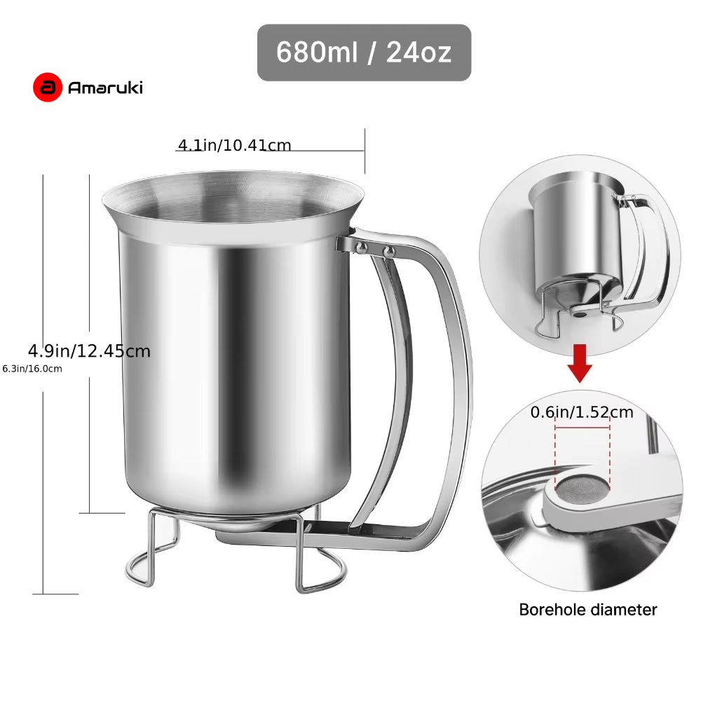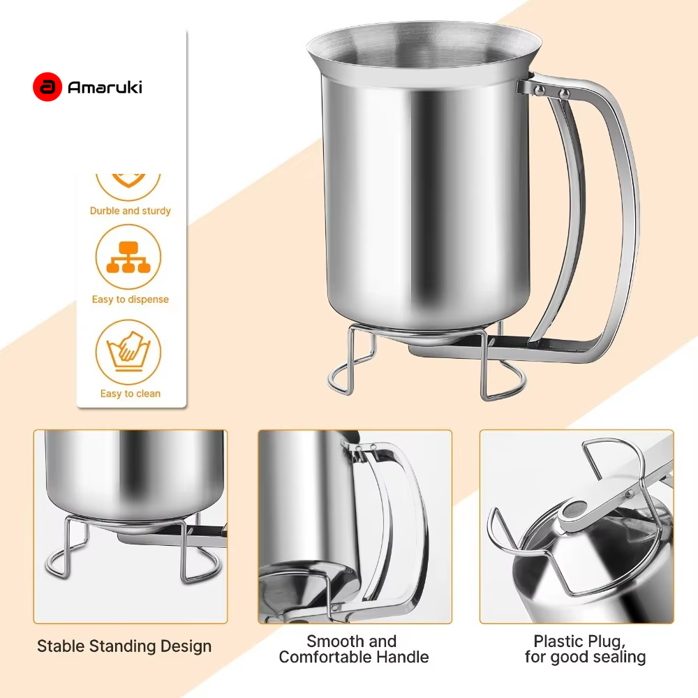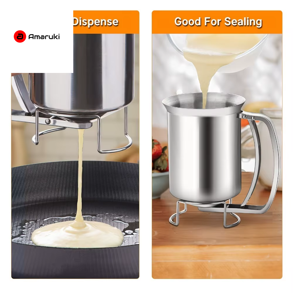 Stainless Steel Batter Dispenser 680Ml Reusable Food Grade for Pancakes Waffles Cupcakes Easy Release Pourer Kitchen Tool