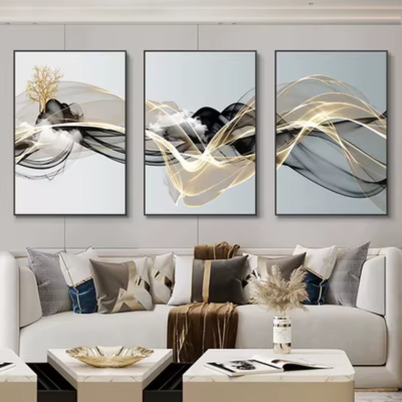 3 Nordic Luxury Ribbon Abstract Wall Art Landscape Modern Poster Print Picture Living Room Home Decorative Painting