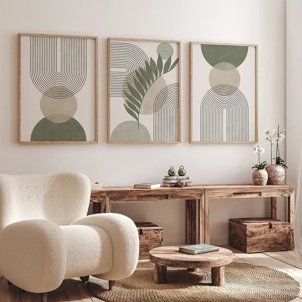 Nordic Sage Green Botanical Posters Prints Pictures Abstract Boho Geometric Wall Art Canvas Painting for Living Room Home Decor