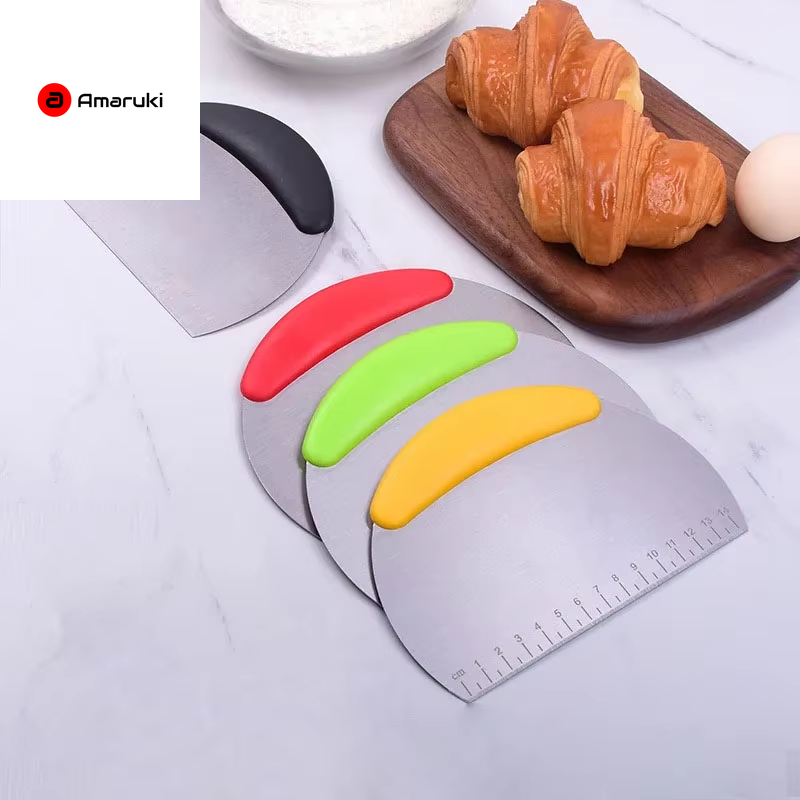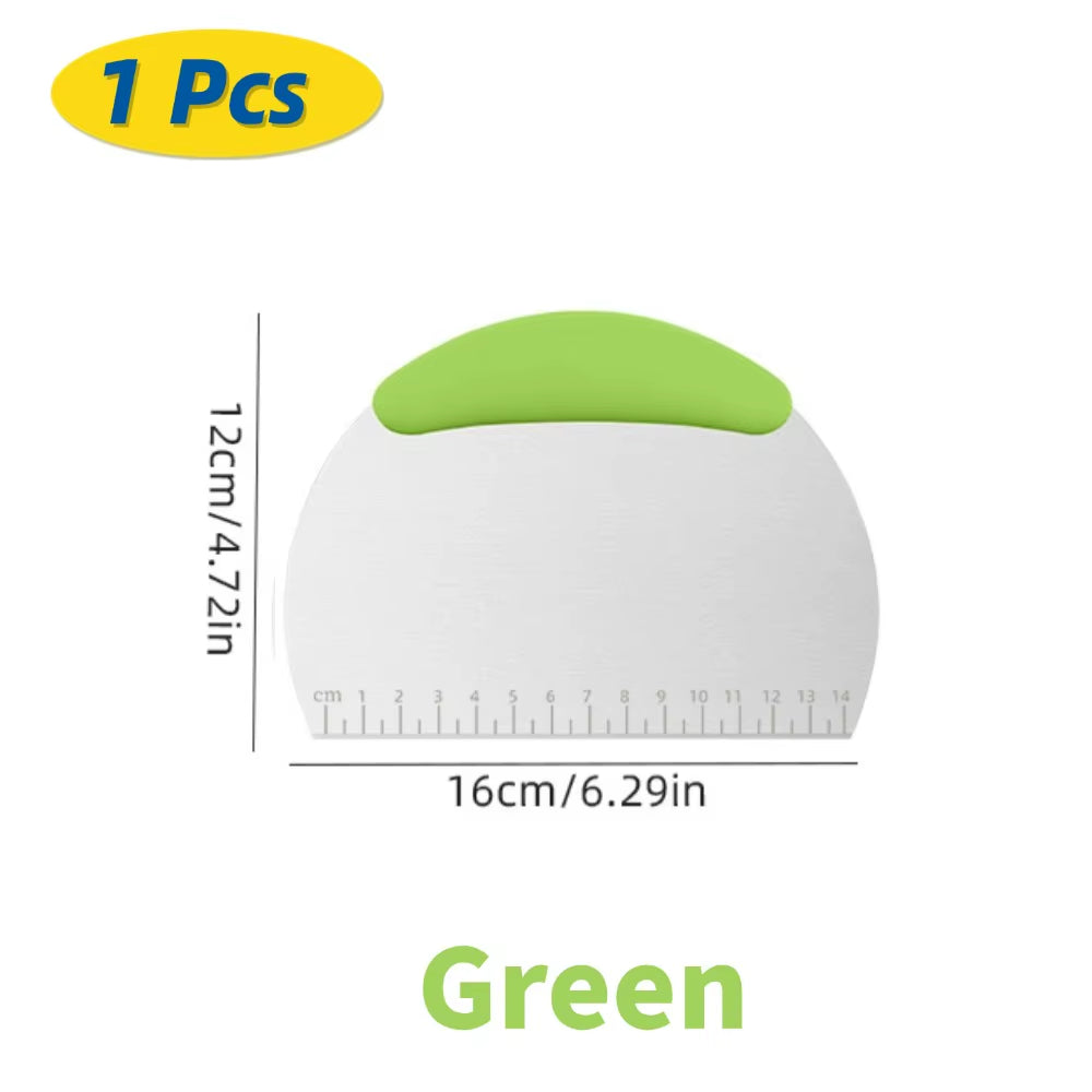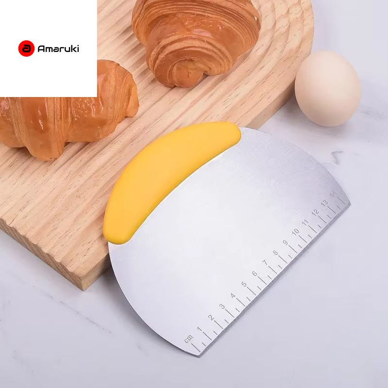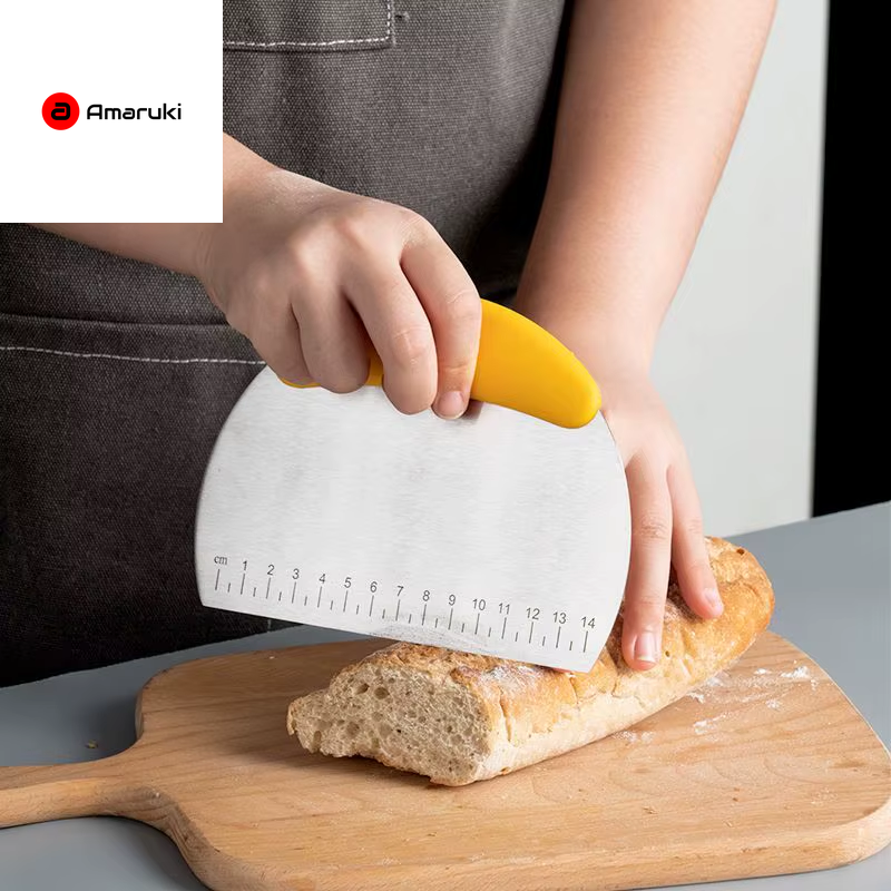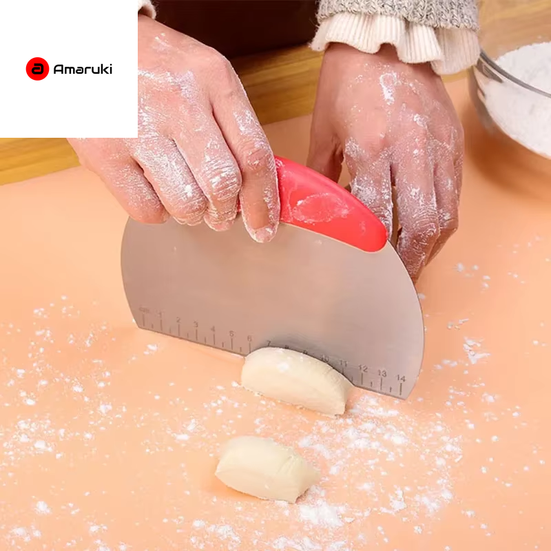 This tool is a baking multitasker! Use it as a classic pastry cutter to quickly chop through butter and flour mixtures, creating flaky pie crusts or tender biscuits in a snap. Need to divide dough evenly? It doubles as a precise dough scale and scraper, helping you portion out perfect sizes for rolls, buns, or pizza bases. It’s also ideal for cutting freshly baked bread with clean, smooth edges – truly an all-rounder in the kitchen!