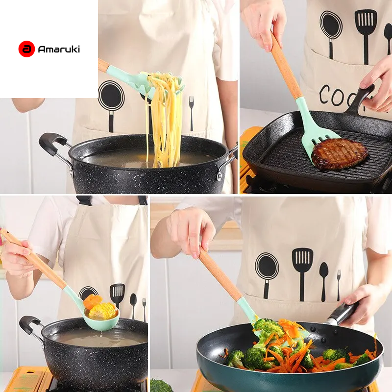 Easy to clean and dishwasher-safe, this set is built to handle everyday cooking with convenience and efficiency. Available in stylish colors, these utensils bring both elegance and practicality to your kitchen—making them ideal for home chefs and beginners alike.