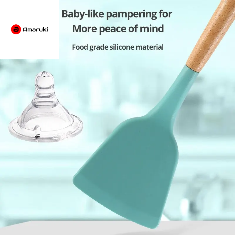 Upgrade your kitchen experience with our premium silicone kitchen utensils, thoughtfully designed for durability, versatility, and style. Made from high-quality, food-grade silicone, these utensils are heat-resistant, non-stick, and completely safe for all cookware, including delicate non-stick pans. The ergonomic wooden handles provide a comfortable, secure grip, while the flexible silicone heads protect your cookware from scratches and stains. Whether you’re stirring, flipping, serving, or baking, each utensil combines functionality with modern design.