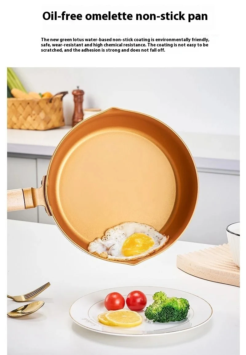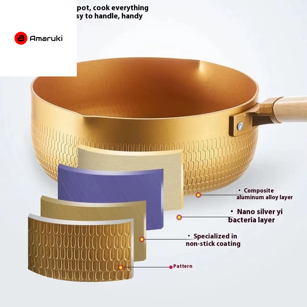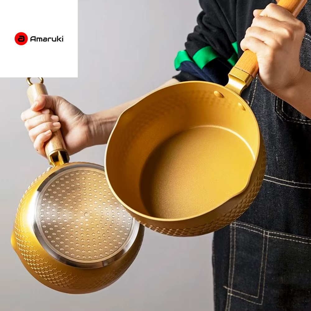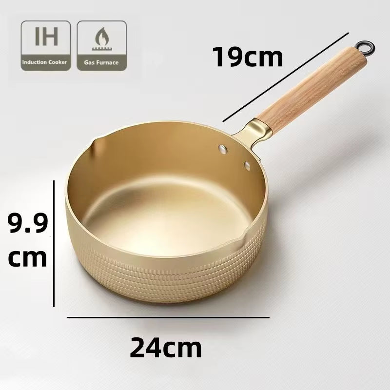 18/20/24Cm Gold Soup Pot Japanese Snow Saucepan Non-Stick Frying Pan Wok Wood Handle Home Milk Sauce Cooking Kitchen Cookware
