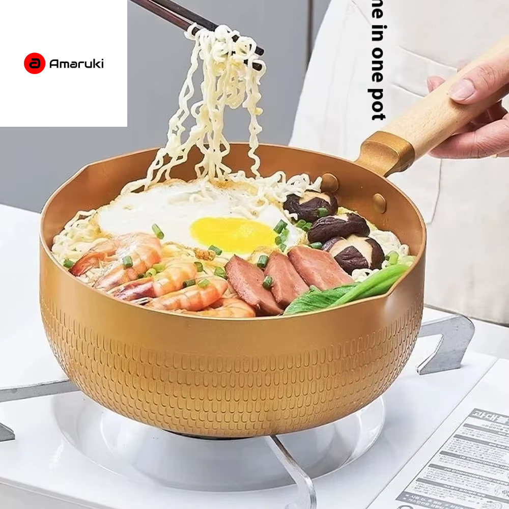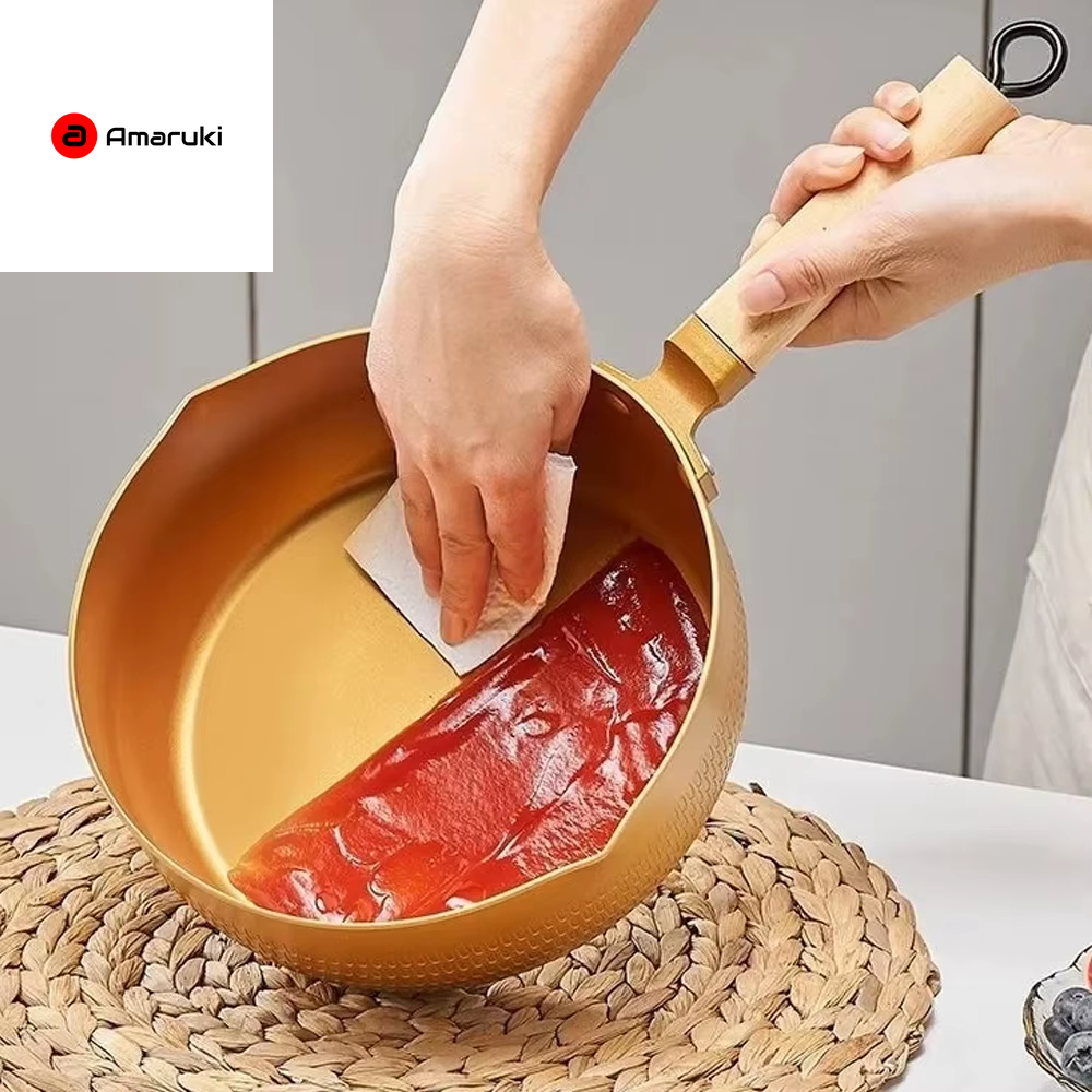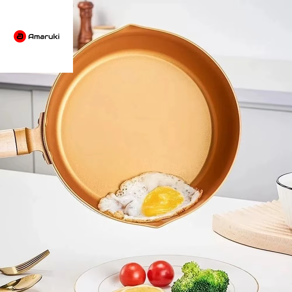 18/20/24Cm Gold Soup Pot Japanese Snow Saucepan Non-Stick Frying Pan Wok Wood Handle Home Milk Sauce Cooking Kitchen Cookware