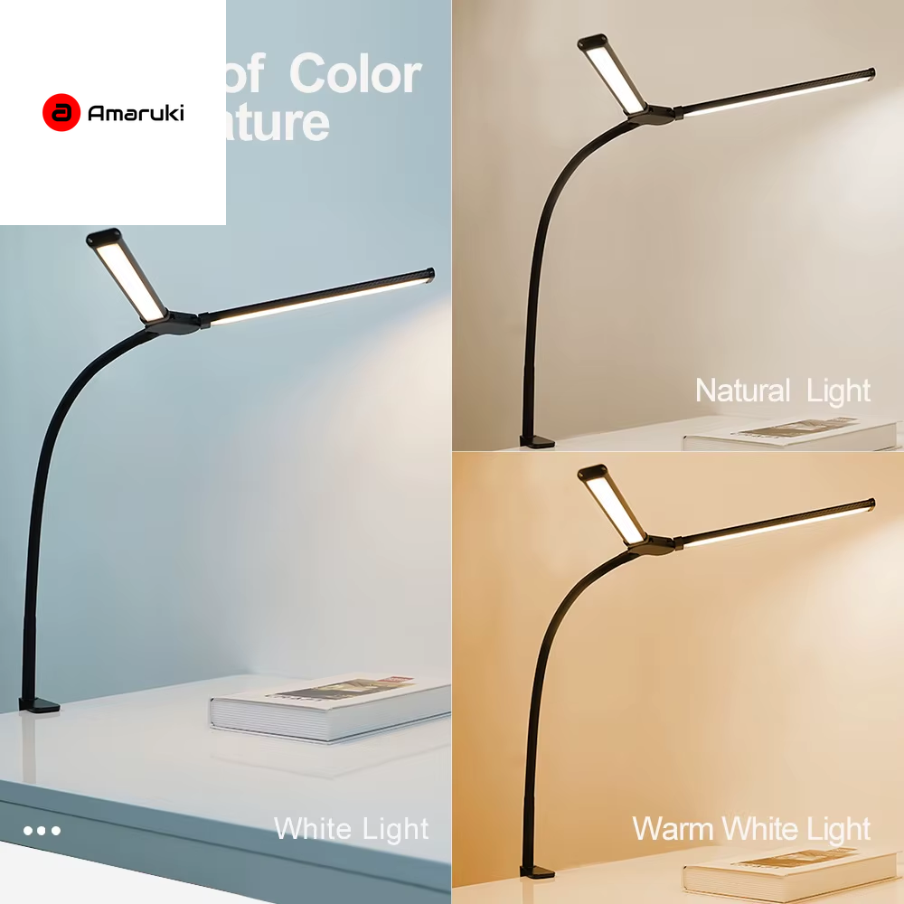 2-Headed LED Desk Lamp for Office Home Eye-Caring Architect Lamp with Clamp USB 3 Color Flexible Adjustable Lighting Table Lamp