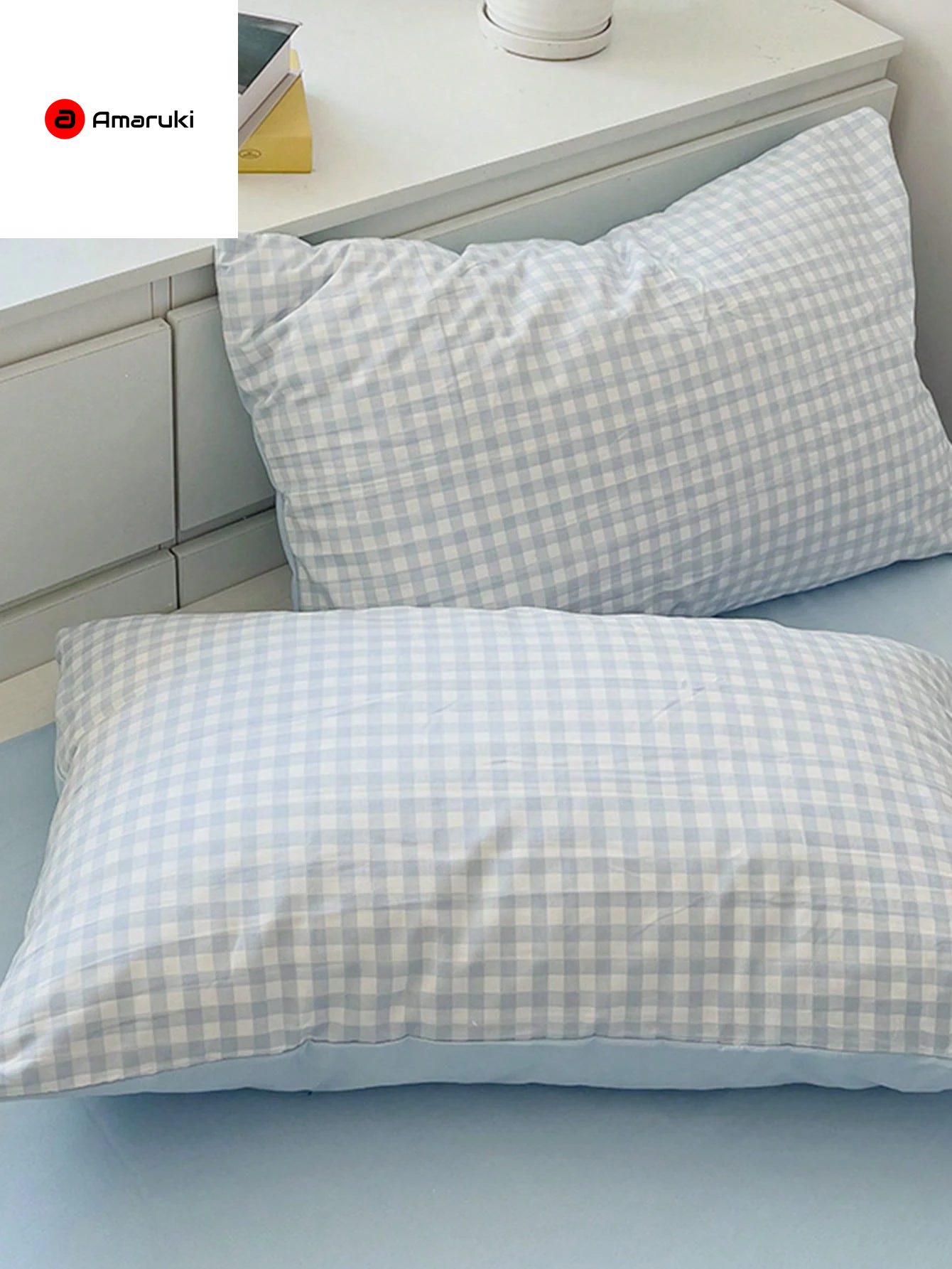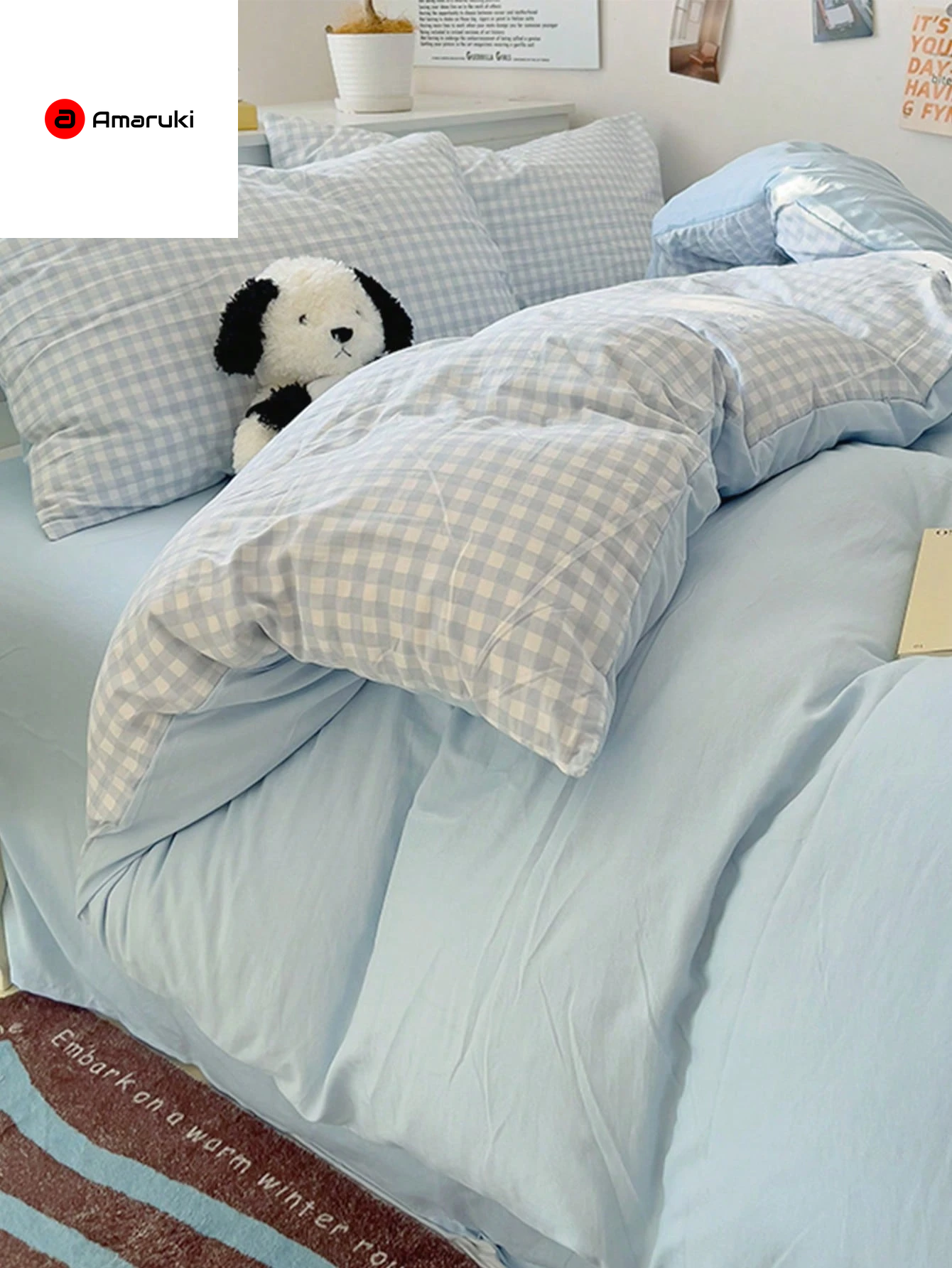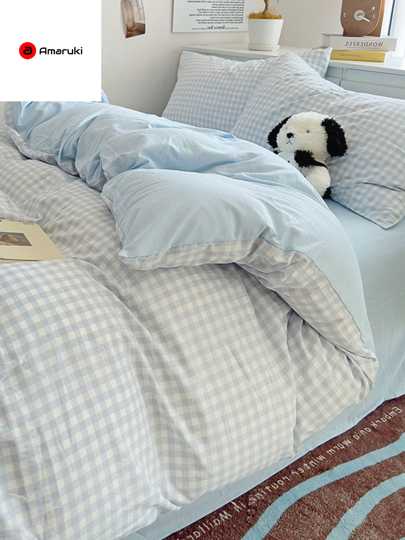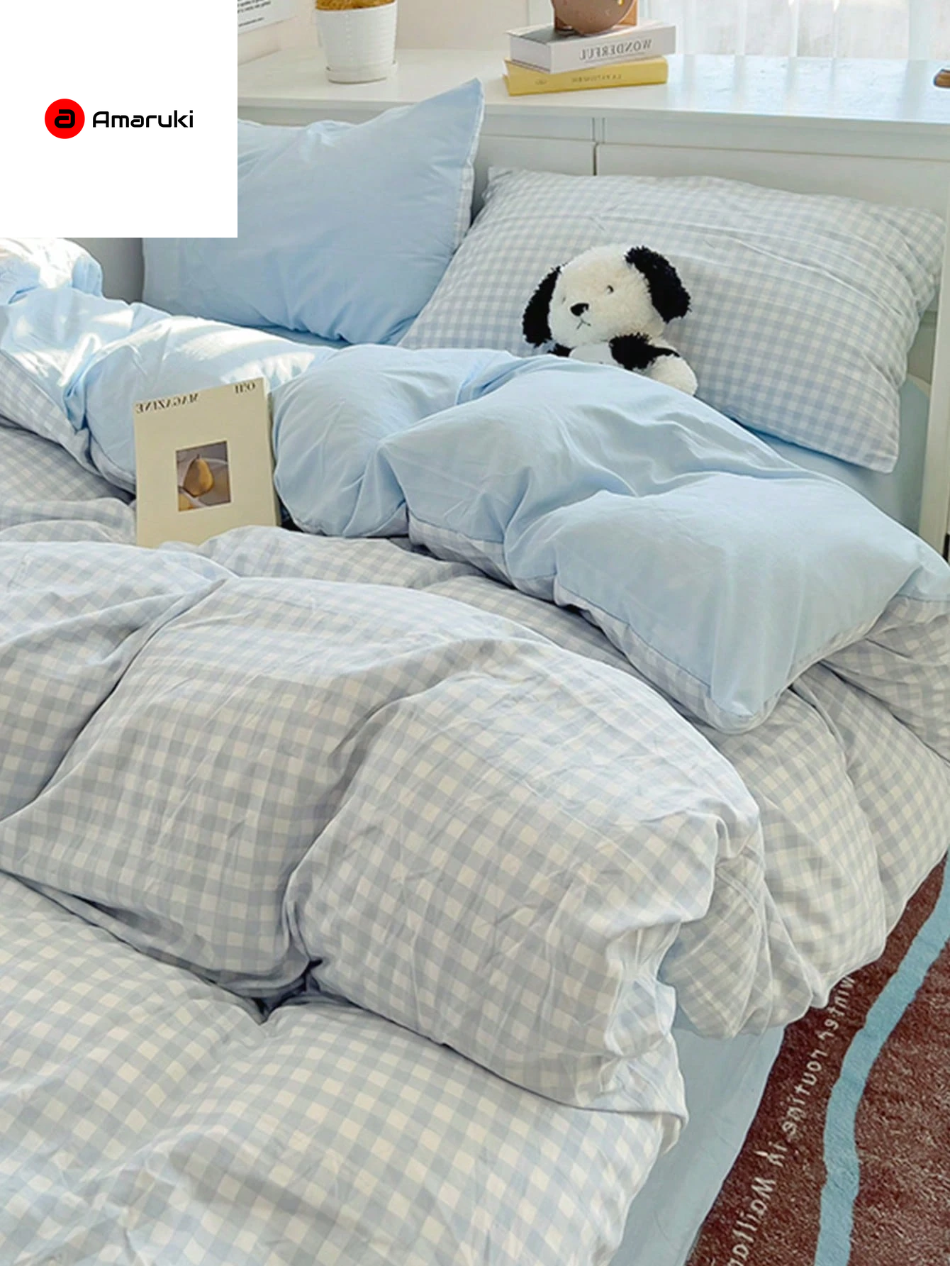 3Pcs, Sky Blue, Small and Fresh,Plaid,Girls,School Students, Small Fresh, Super Soft, Lovely, Four Seasons, Boys and Girls,Dormitory Dress-Upsanding Quilt Cover, Home Bedding, Kit, excluding Quilt Core,Twin Queen King