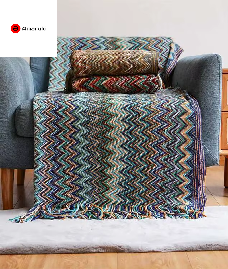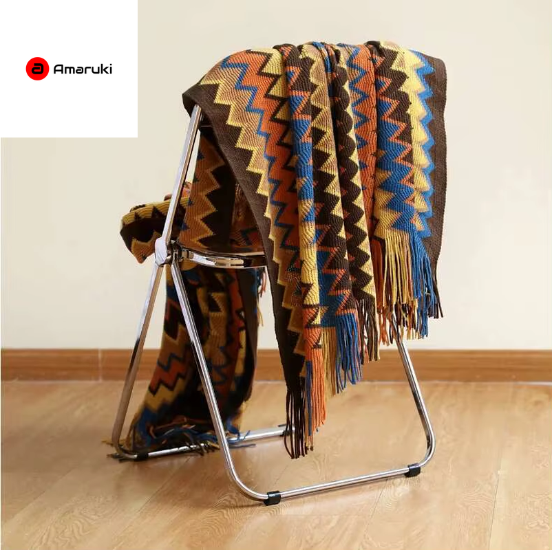 Blanket Tassel 100% Blanket with Acryl Summer Hand Bed Knitted Sofa Travel Breathable Chic Bohemian Soft Comfortable Blanket
