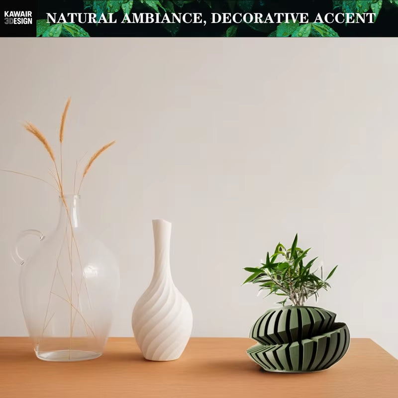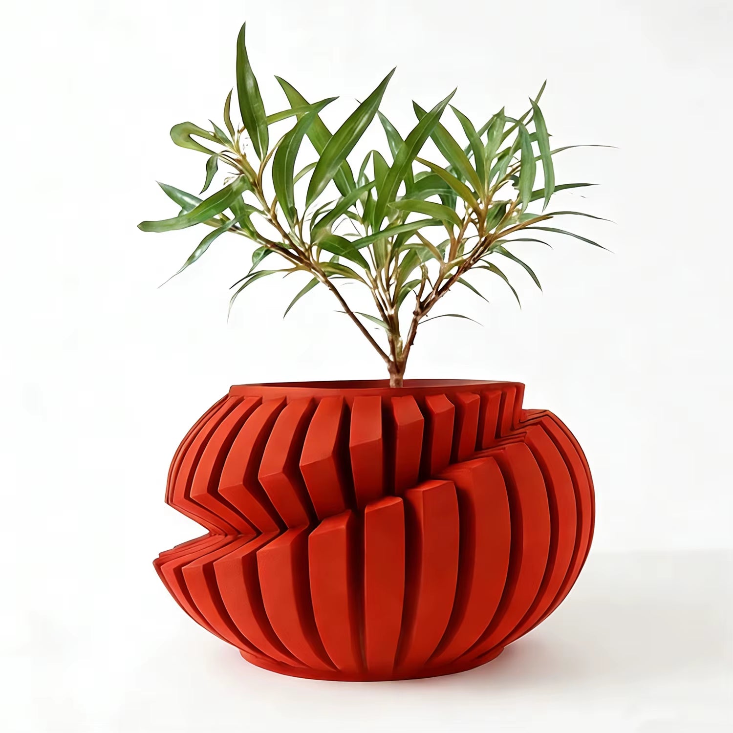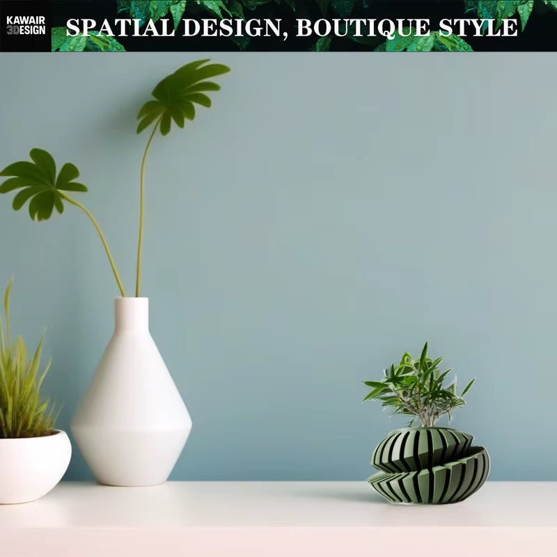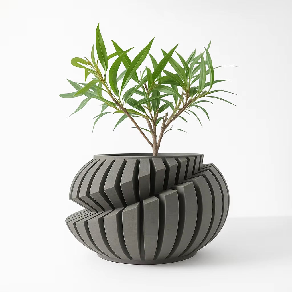 Elevate your indoor greenery with this eco‑friendly 3D printed flower pot featuring a striking irregular geometric design and textured line details. Crafted with sustainable biodegradable materials and modern 3D‑printing precision, this planter combines artistic style with planet‑conscious design. The sculptural form casts dynamic shadows and adds visual depth to any tabletop, shelf, or workspace while showcasing your favorite plants in contemporary style. Perfect as a thoughtful sustainable gift or a standout decor piece, this planter brings both form and function to your home or office. Made from high‑quality, renewable bioplastic for a lightweight yet durable build that supports your plants and your aesthetic.