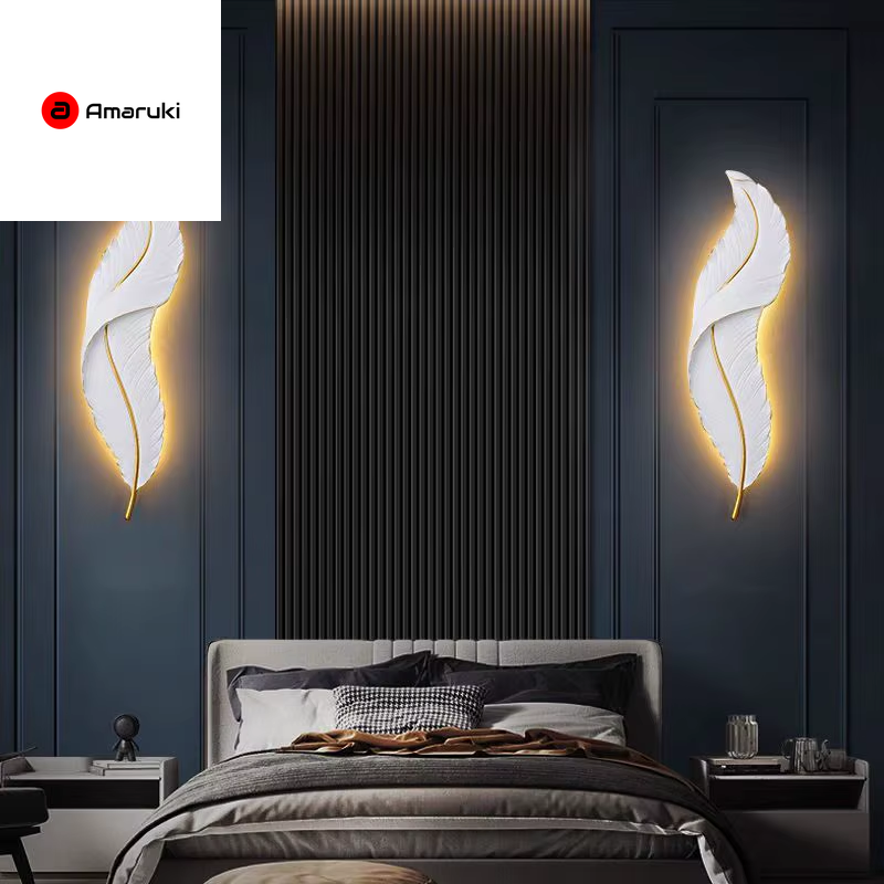 Luxury Feather Wall Lamp, Minimalist Creative Sconce for Bedroom, Hallway, Living Room Decor