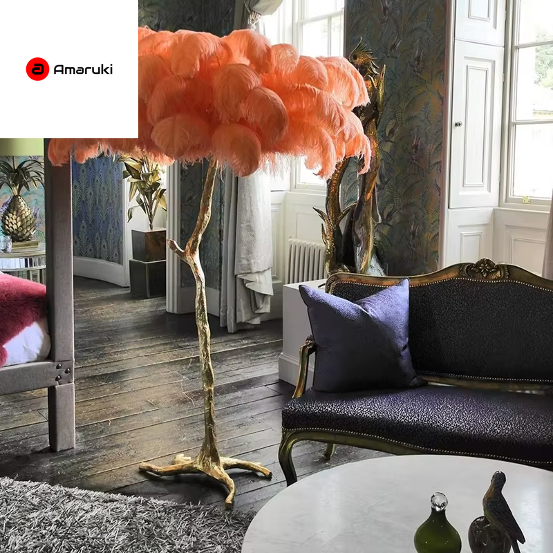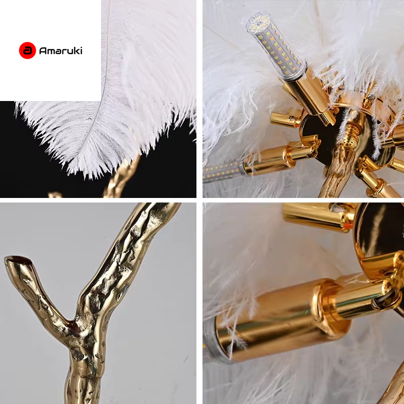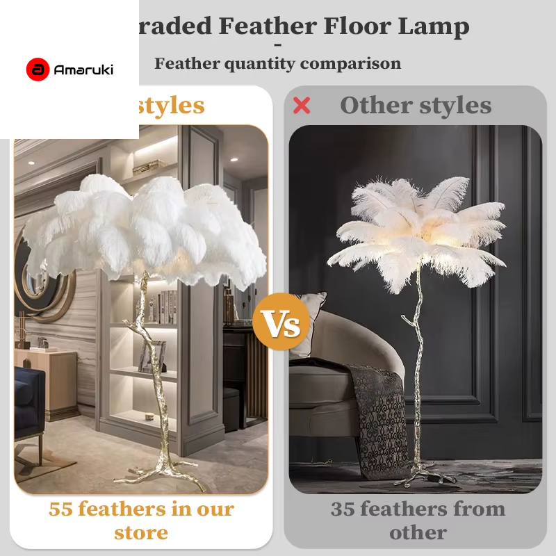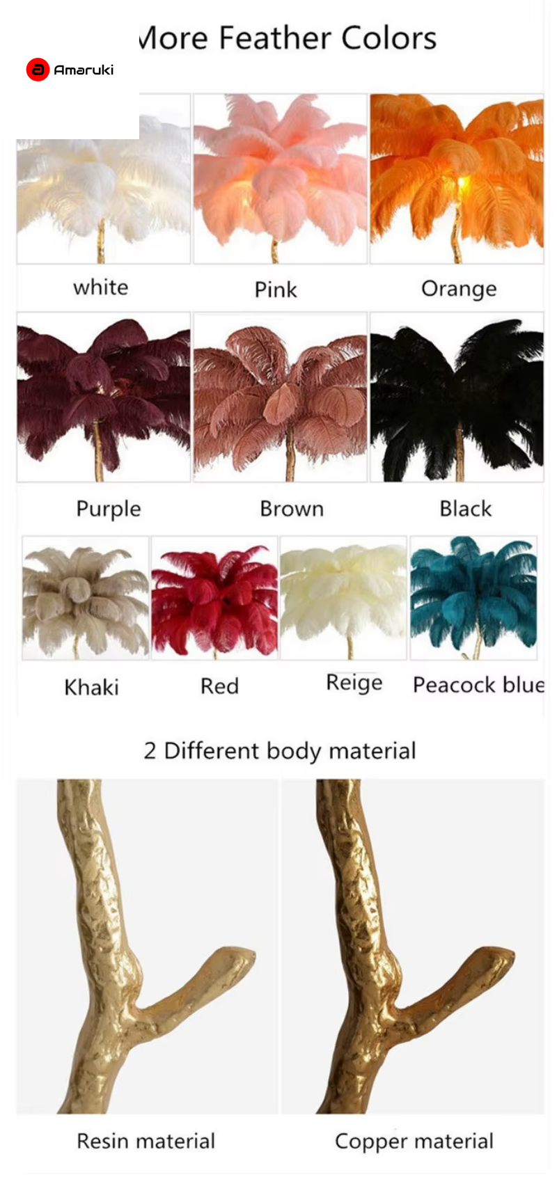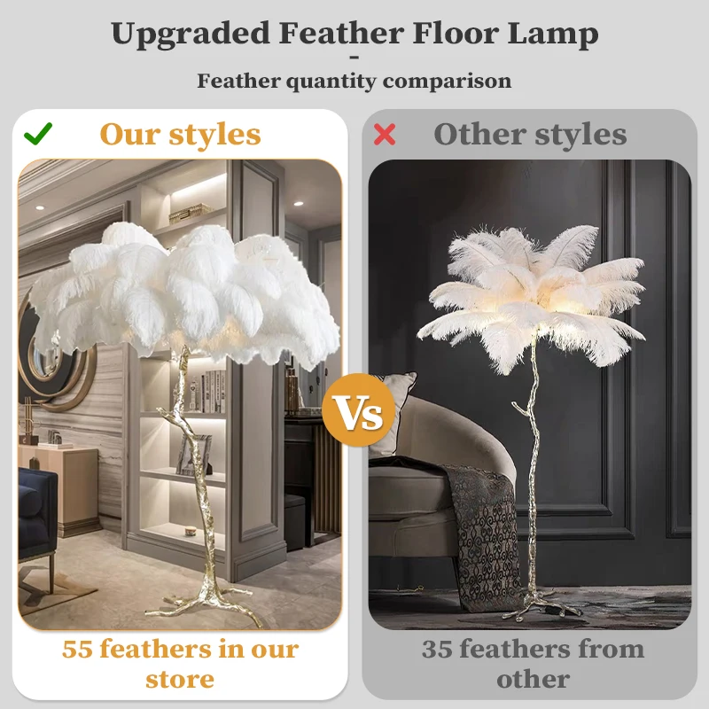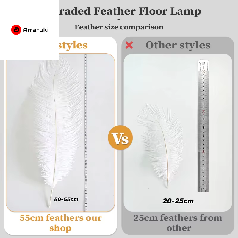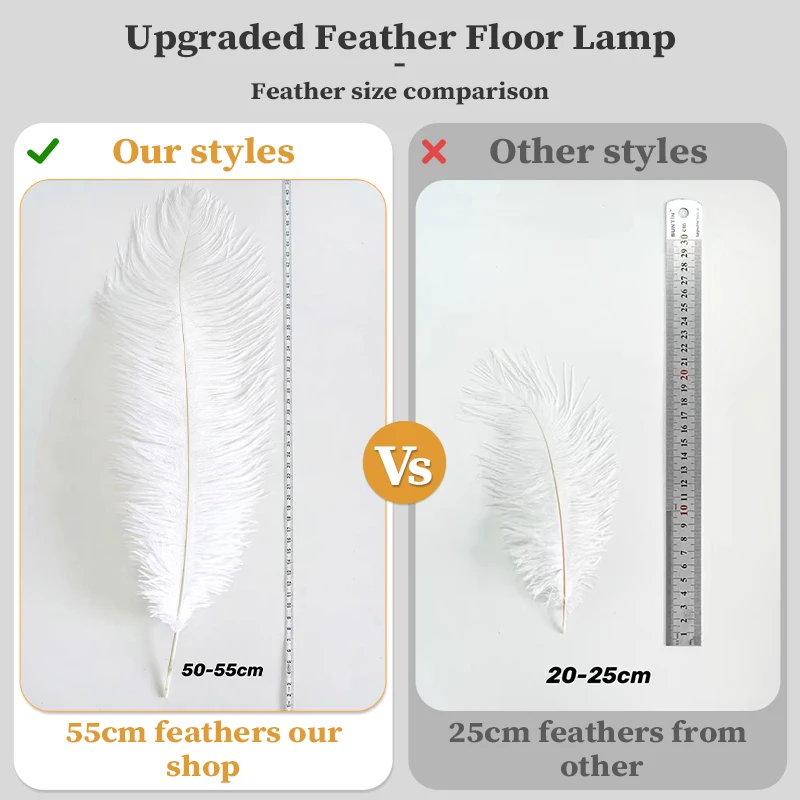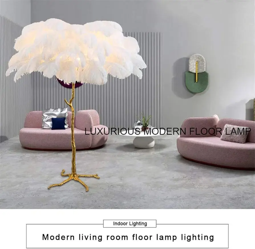 Nordic Floor Lamp with Feather Ostrich White Feathers Standing Lamps for Living Room Bedroom Modern Bedside Feather Floor Lights