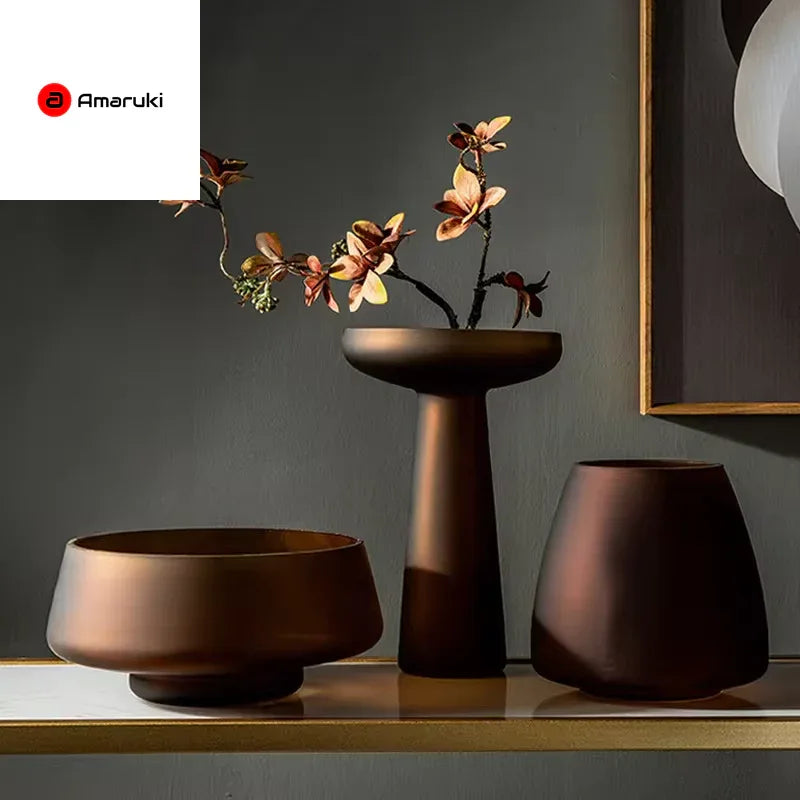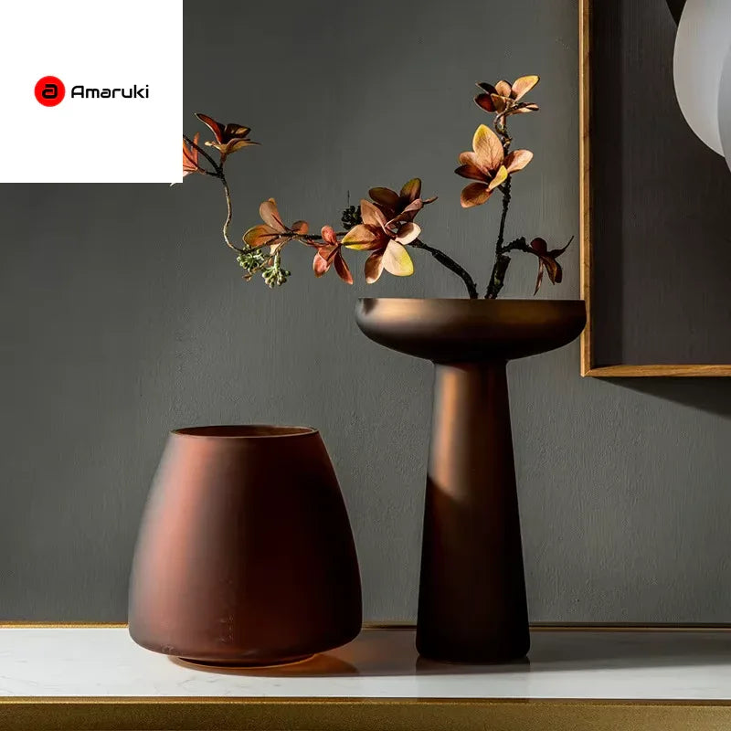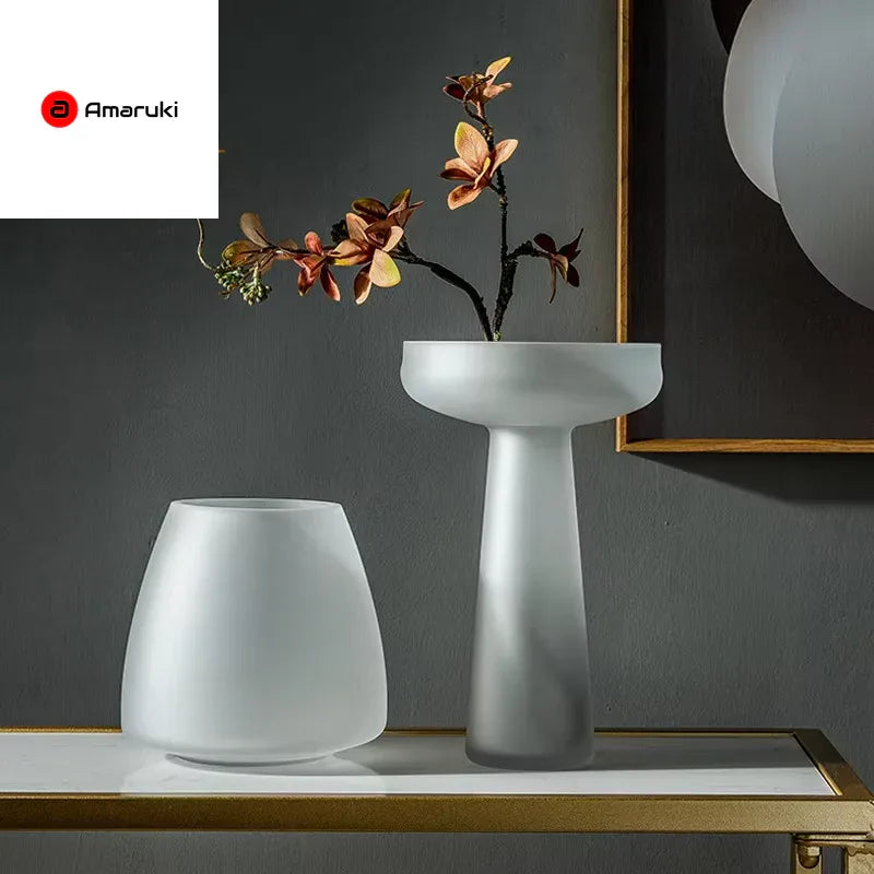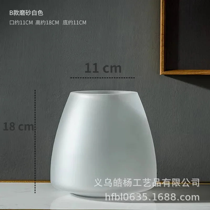 Nordic Light Luxury Home Decor Frosted Glass Vase Living Room Decoration Table Flowers Hydroponic Vase Terrarium Decor - Amaruki