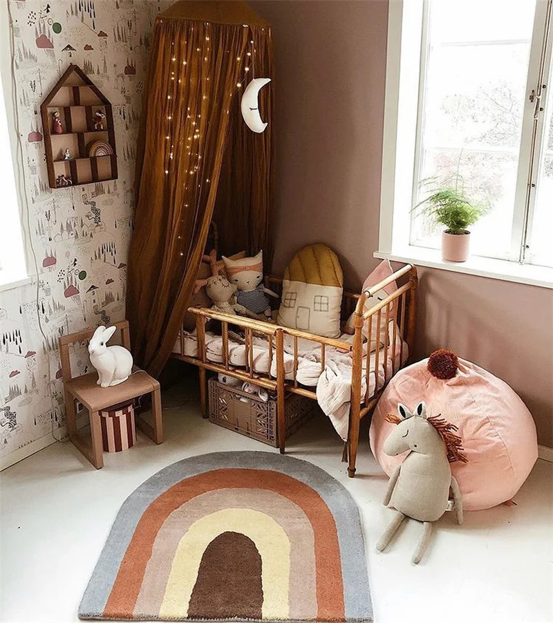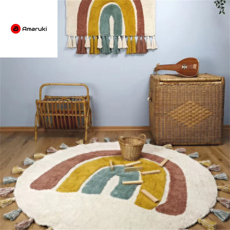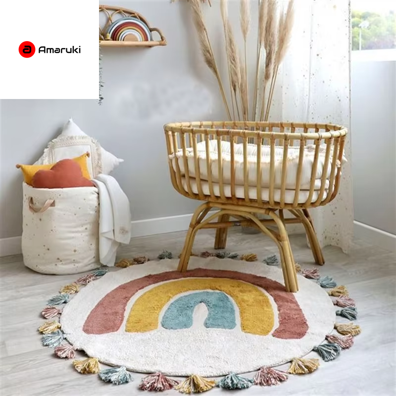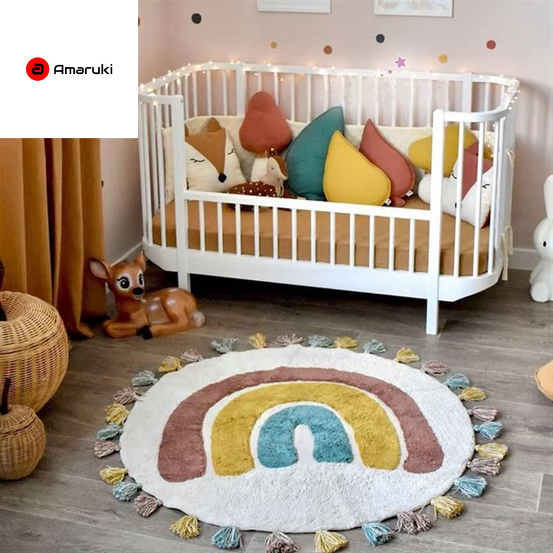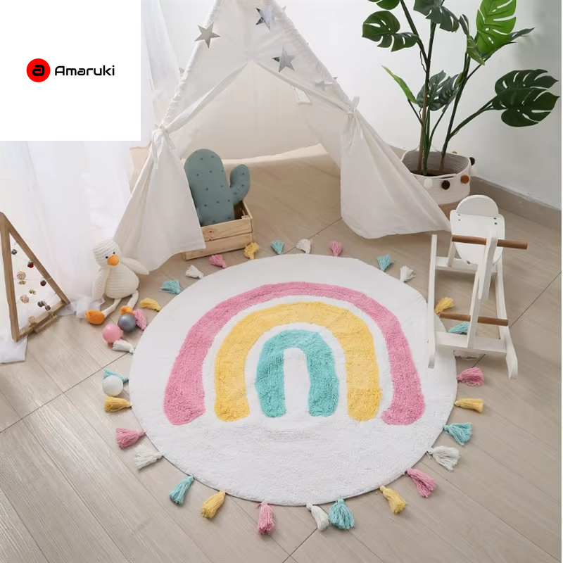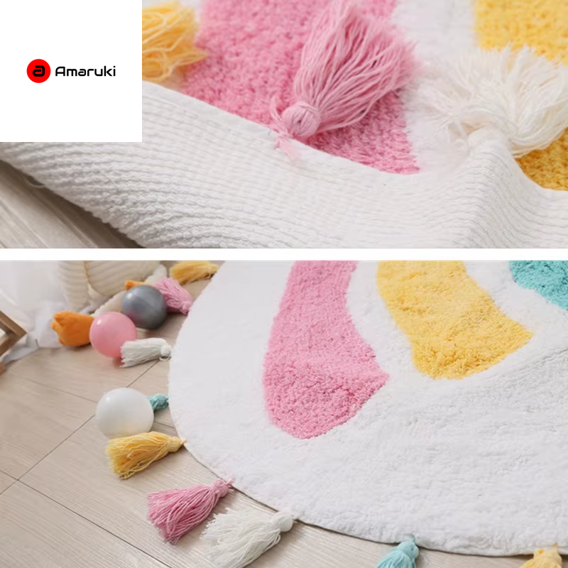 Rainbow Tassel Rugs Kids Room Floor Carpet Thick Girl Boy Room Rugs Anti-Slip Mat Bedroom Bedside Children Game Crawling Mat